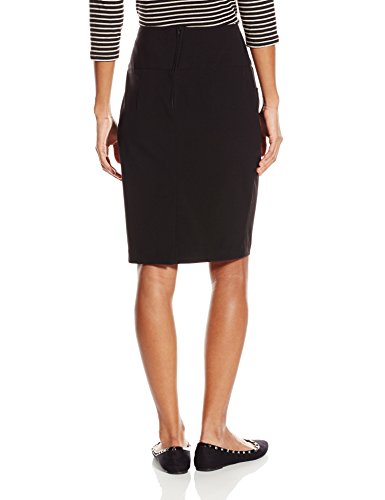 75% Polyester, 21% Rayon, 4% Spandex Imported Zipper closure Machine Wash 0.7″ high 14″ wide Fitted pencil skirt with wide triple-button waistband and front pockets Center back zipper
