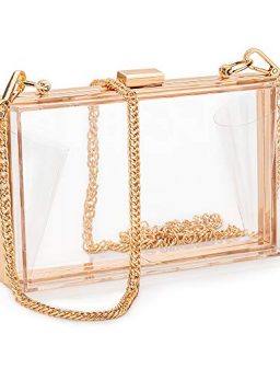 *Details: The clutch is equipped with one 47inchs golden chain strap so that you can also use it as a shoulder bag. A clasp type button to secure the bag.