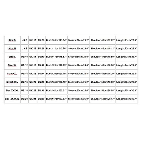 ★★ Size:5XL — US:18— Bust:147cm/57.87” — Shoulder:52cm/20.47” — Sleeve:66cm/25.98” —Length:78cm/30.71”
