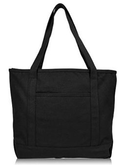 Zipper closure. Pockets: 1 outer open pocket; 2 large compartments divided by middle zippered pocket; 2 small open pockets; 1 small zippered pocket. What’s more, this bag holds your daily essentials like A4 size books, phones, wallets, bottles, keys etc, fits 13 inch Macbook. For a daily use bag, I think it’s not too big nor too small.