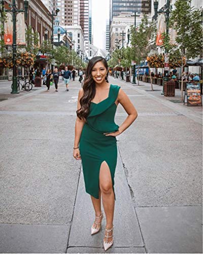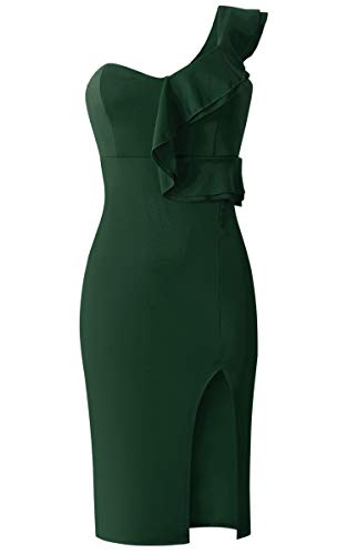 Design: One Shoulder, Ruffle Design, Knee Length, Open Back, Split Style, Midi Bodycon Dress. Makes you elegant and shining when you wearing it.