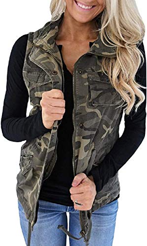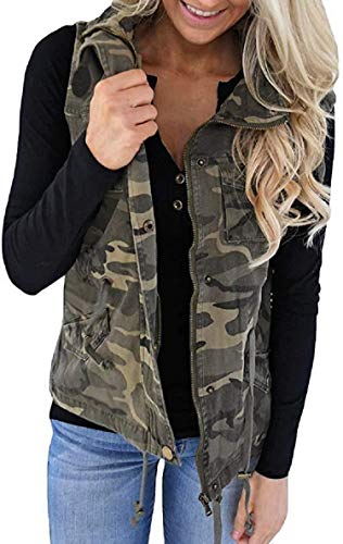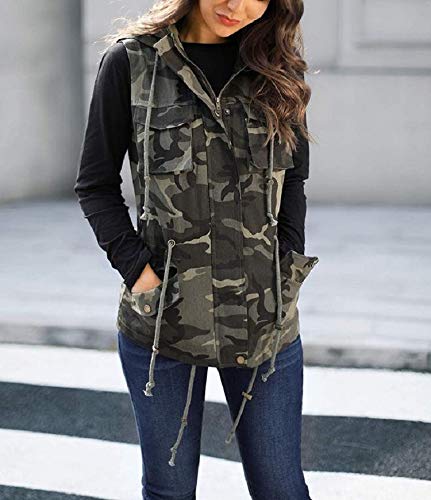 Soulomelody Womens Military Anorak Sleeveless Vest Safari Utility Drawstring Lightweight Hoodies Jacket with Pockets