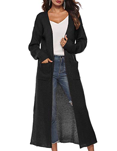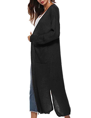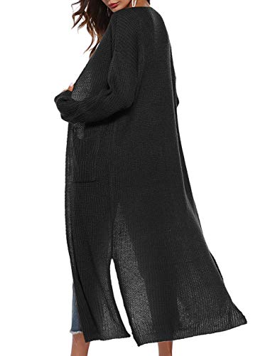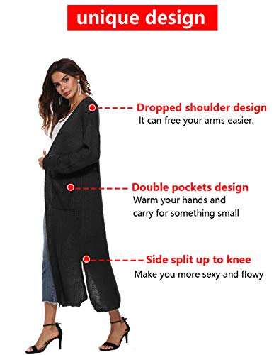 Womens Casual Long Sleeve Split Open Cardigan Knit Long Cardigan Sweaters with Pockets