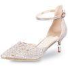 Features: Chunky Low Heel, Scalloped Strap, Ankle Buckle, Pointed Toe, Cut out, D’orsay Shoes for Women.